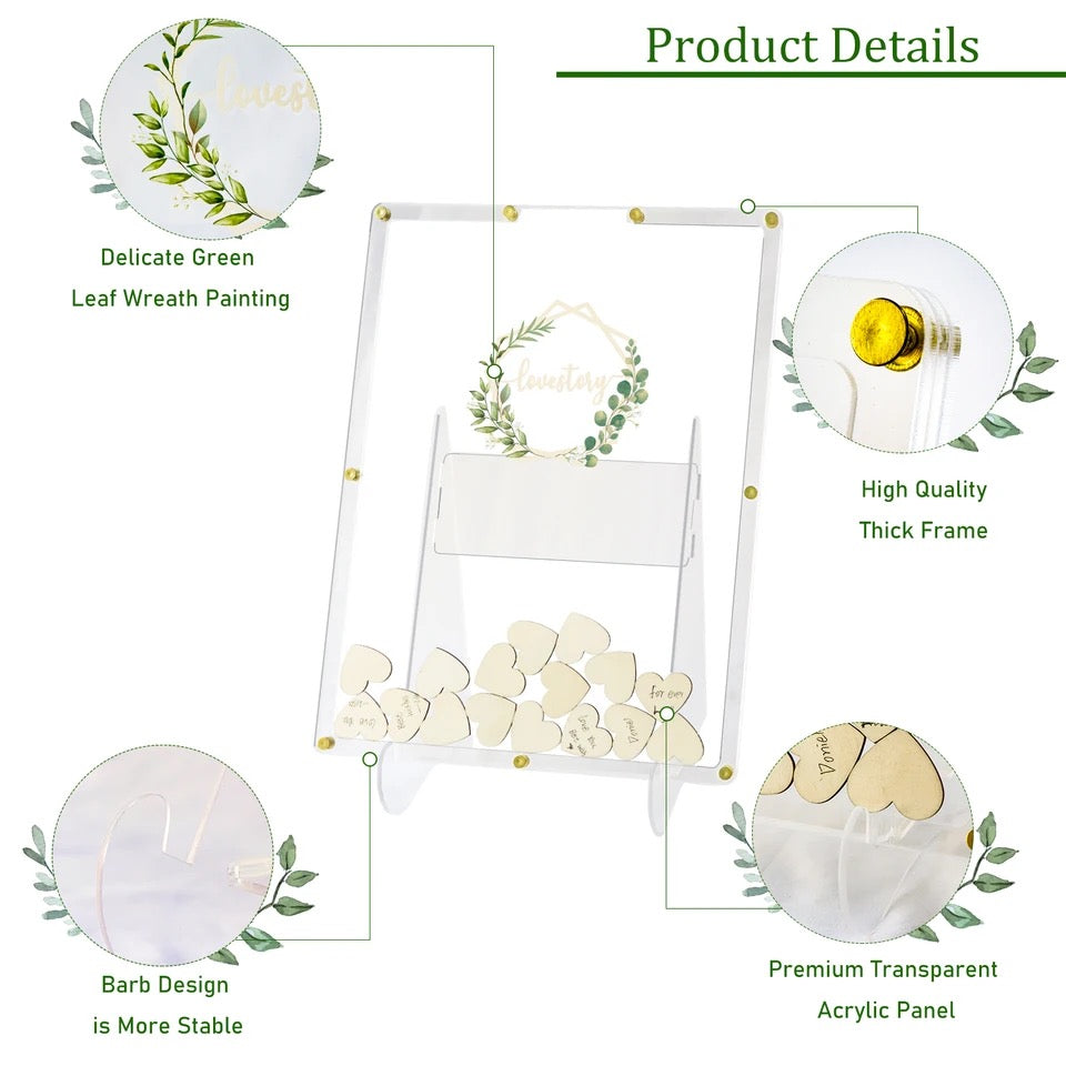 Make your wedding day truly memorable with our unique Acrylic Wedding Guest Book Alternative. This elegant drop box offers a modern twist on the traditional guest book, allowing your guests to leave their heartfelt messages on wooden hearts that you can cherish forever.