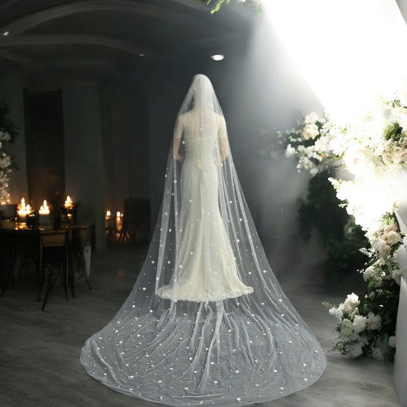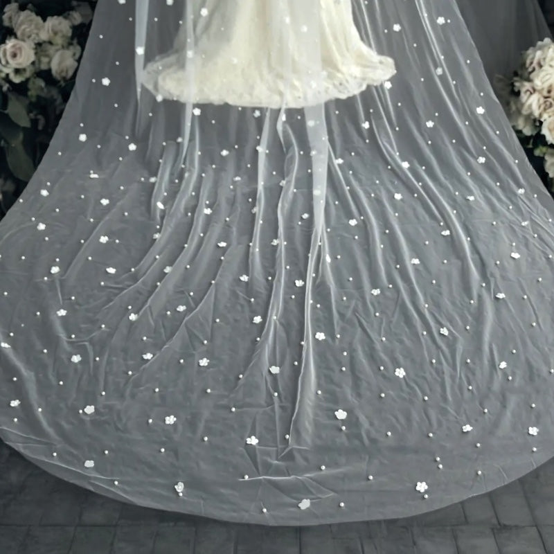 Anastasia - Pearls Wedding Veil with 3D Flowers