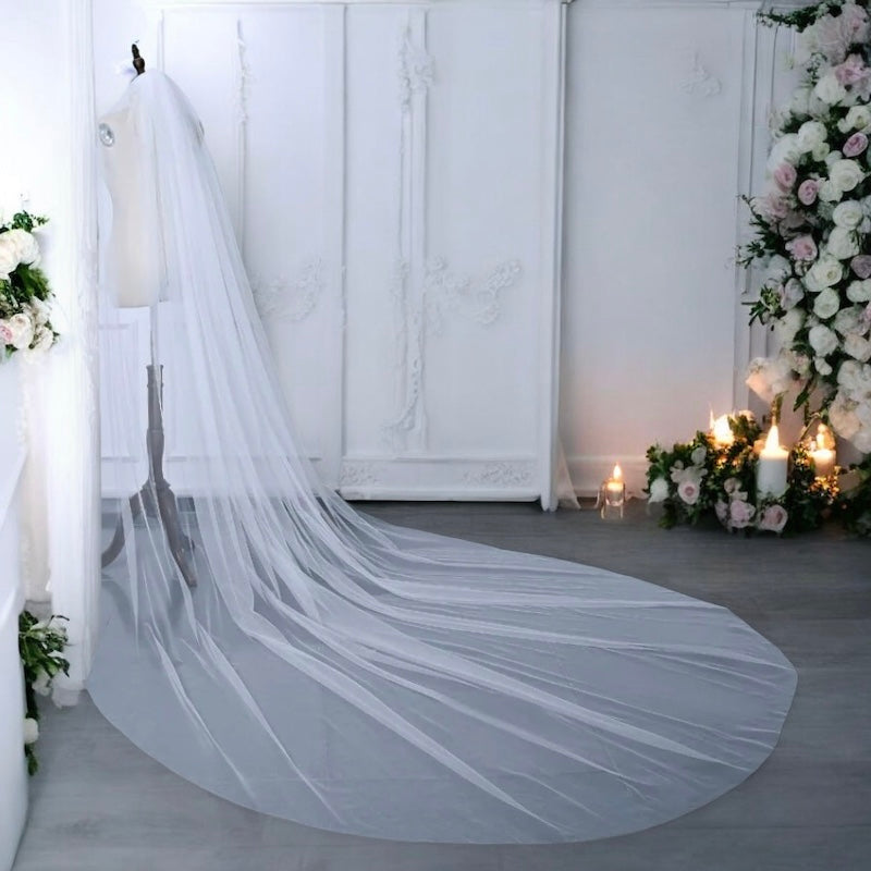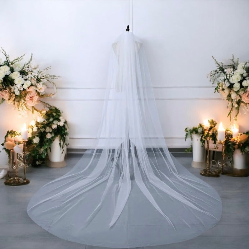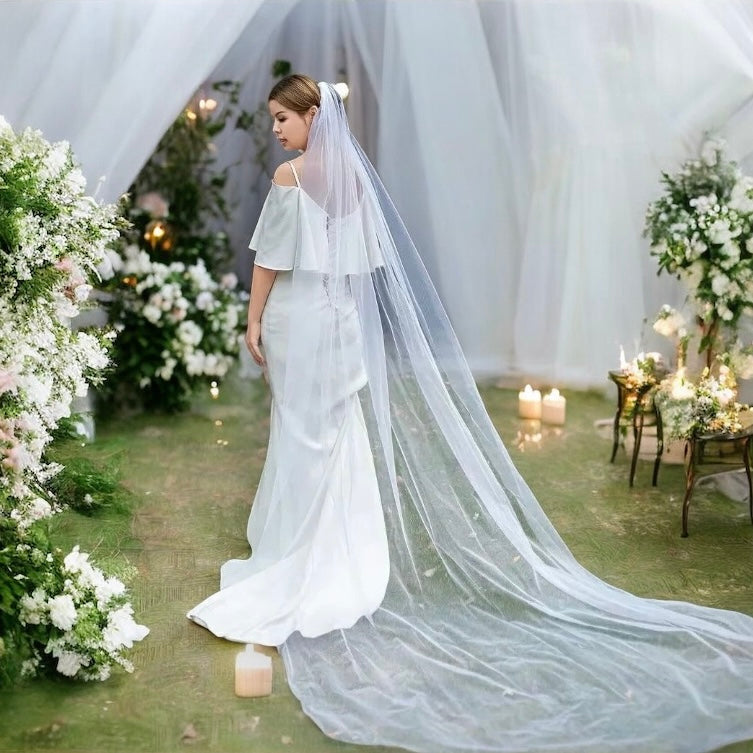Length & Layers: Choose from a single-layer veil for a sleek, understated look, or opt for two or three layers for added volume and drama. The 3-meter length ensures a stunning, full-length cascade that perfectly complements any gown.