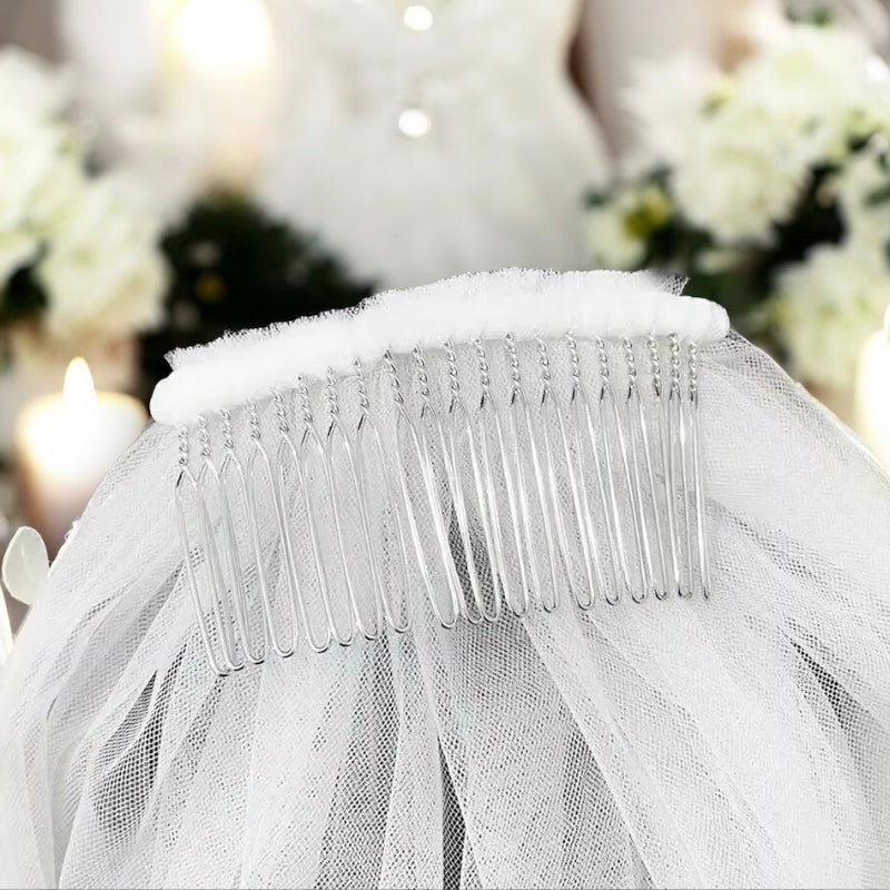 Color Options: Available in classic White and sophisticated Ivory, our veil effortlessly blends with a variety of bridal dresses and themes.