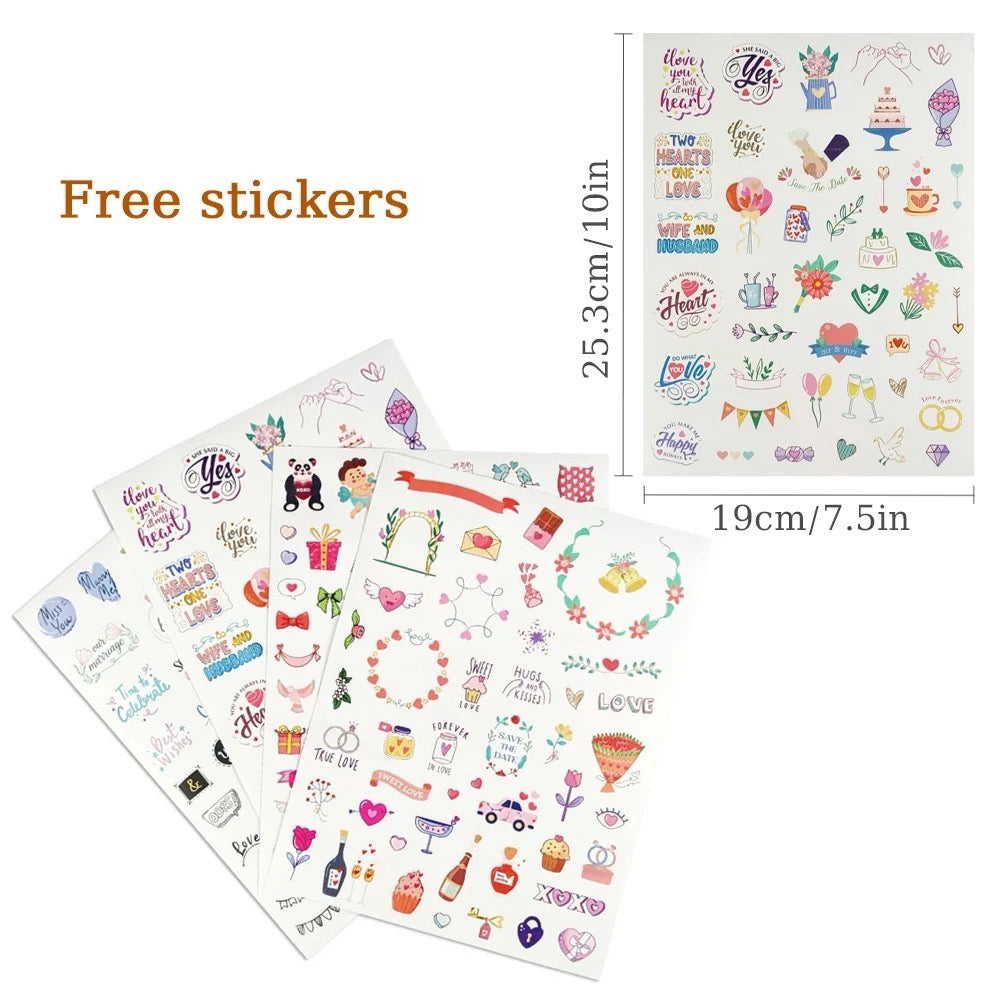 Complete Set: The guest book comes with 2 decorative stickers. A ribbon bookmark helps mark the page for easy access.
